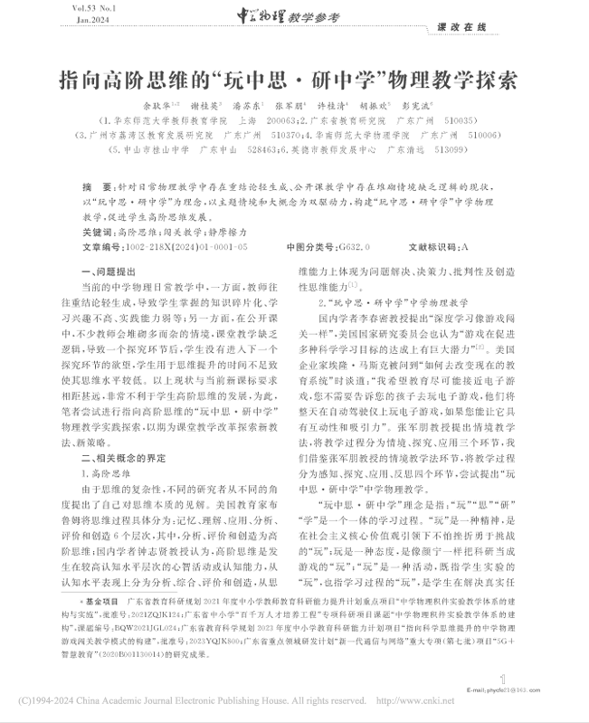 作者:余秋华,谢桂英,潘苏东,张军明,许桂清,胡振波,彭克斌来源刊物:中学物理教学参考摘要:针对日常物理教学中存在重结构性生成、公开课教学中存在堆砌情境缺乏逻辑的现状,以“玩中思·研中学”为理念,以主题情境和大概念为双驱动力,构建“玩中思·研中学”中学物理教学,促进学生高阶思维发展。关键词:高阶思维;同类教学;静摩擦力