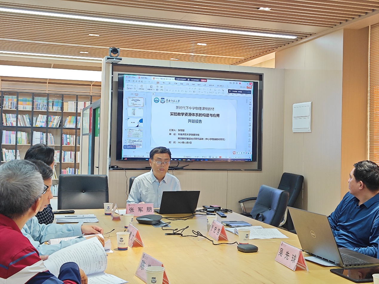 2025 年 12 月 5 日上午,由华南师范大学物理学院国家教材建设重点研究基地(中小学物理教材研究)核心专家张军朋教授主持的国家教材建设重点研究基地2025 年度教育部规划重大项目“新时代下中学物理课程教材实验教学资源体系的建构与应用”开题论证会,在华南师范大学教育科学学院 601 室成功召开。